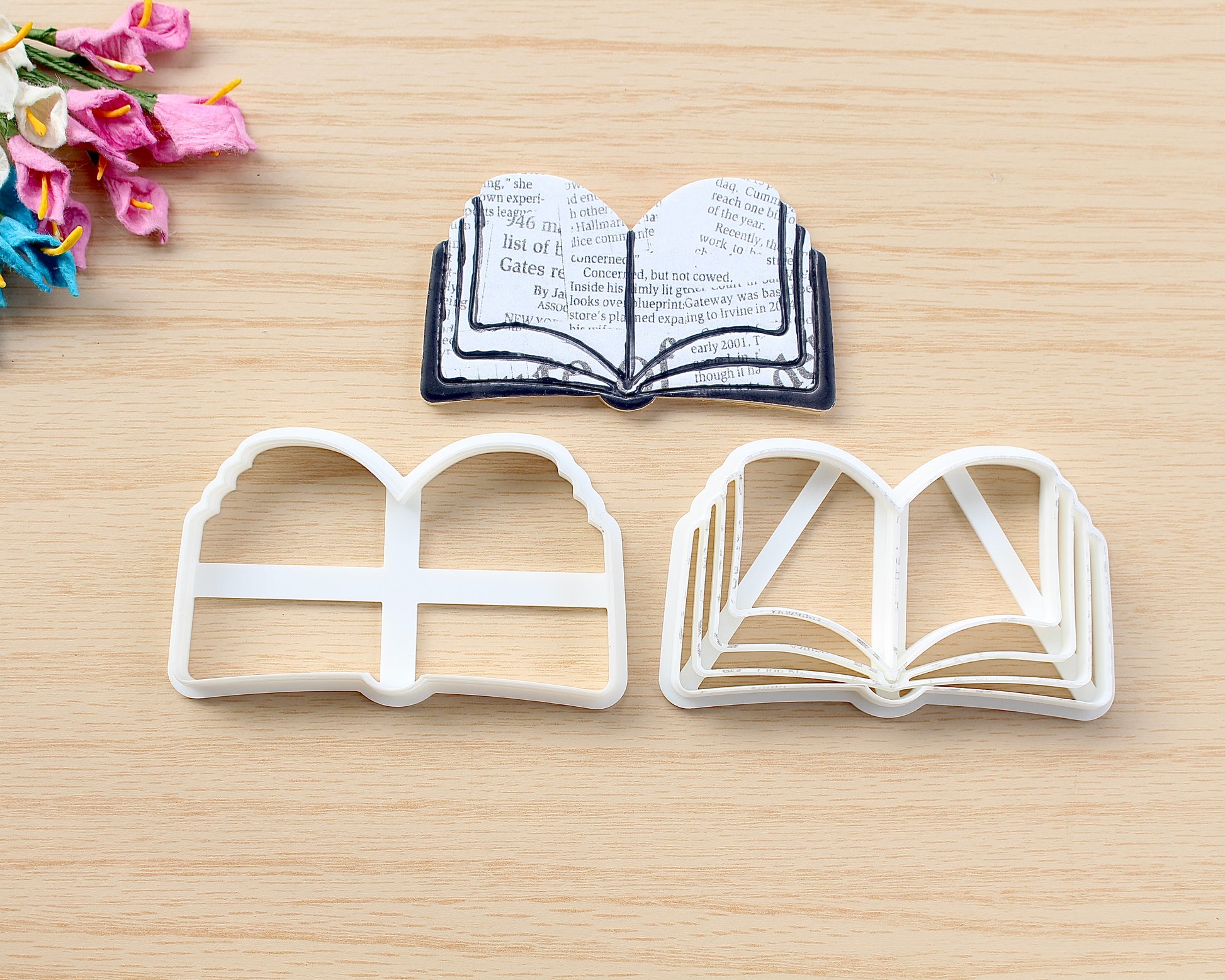 Create beautiful book-themed polymer clay pieces with our Open Book Corner Bookmark Cutter. Perfect for book lovers, handmade gifts, and literary crafts.