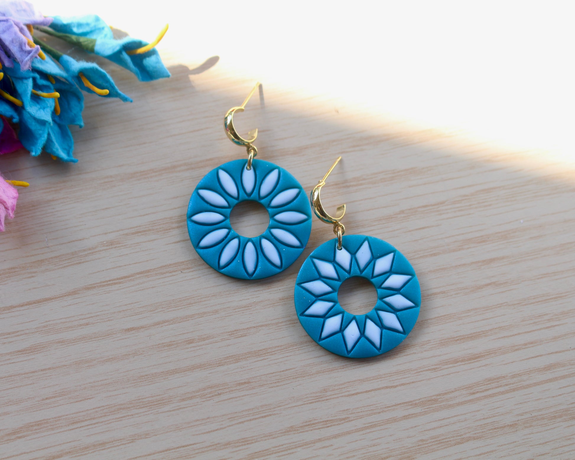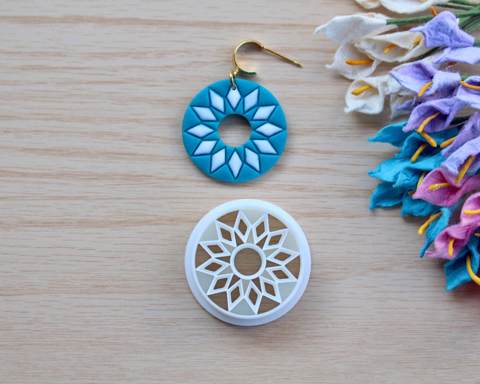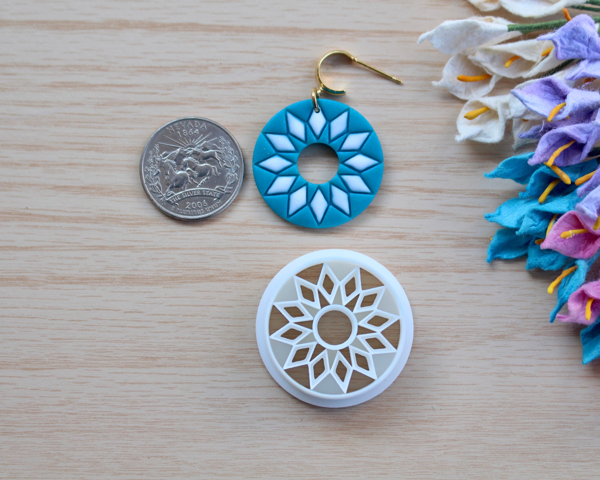 Design stunning celestial earrings and charms with this Star burst circle polymer clay cutter. Durable and precise, perfect for star-themed jewelry, keychains, and craft projects.