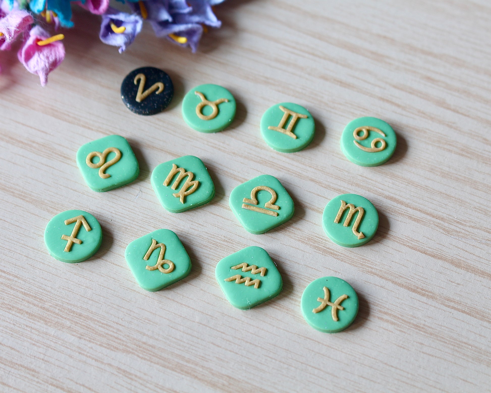 Bring your clay pieces to another level of personalization with this Zodiac Signs element baking mat.